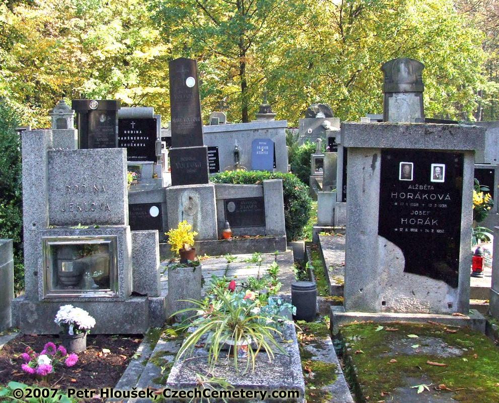 Vlevo: | Vprostřed: Josef Šrotýř, *5.2.1908 - †27.11.1988 | Vpravo: Alžběta Horáková, *17.11.1888 - †13.3.1938 Josef Horák, *12.8.1868 - †24.2.1952 | Okolní náhrobky: Anička Volfová, *3.3.1905 - †26.12.1927 Antonín Staněk, *1.9.1901 - †11.2.1936 Anna Hájková, *2.1.1857 - †7.10.1937 |
