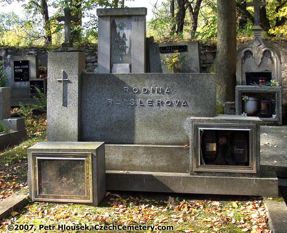 Middle: Josef Raisler, *26.11.1902 - †17.3.1976 | Neighbouring graves: Ing. Václav Důbrava, tragicky zemřel, †8.6.1960 (27) |