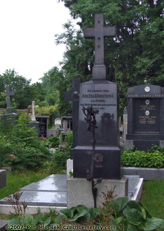 In front: Anežka Körnerová roz. Simrová, choť důlního Pražské želez. prům. spol., *1873 - †1907 | Neighbouring graves: Václav Čuba, lesní hajný v.v., *27.10.1866 - †22.12.1939 Vladislav Čuba, lesní hajný, *25.2.1904 - †16.11.1940 Marie Čubová, *30.7.1875 - †28.7.1958 |