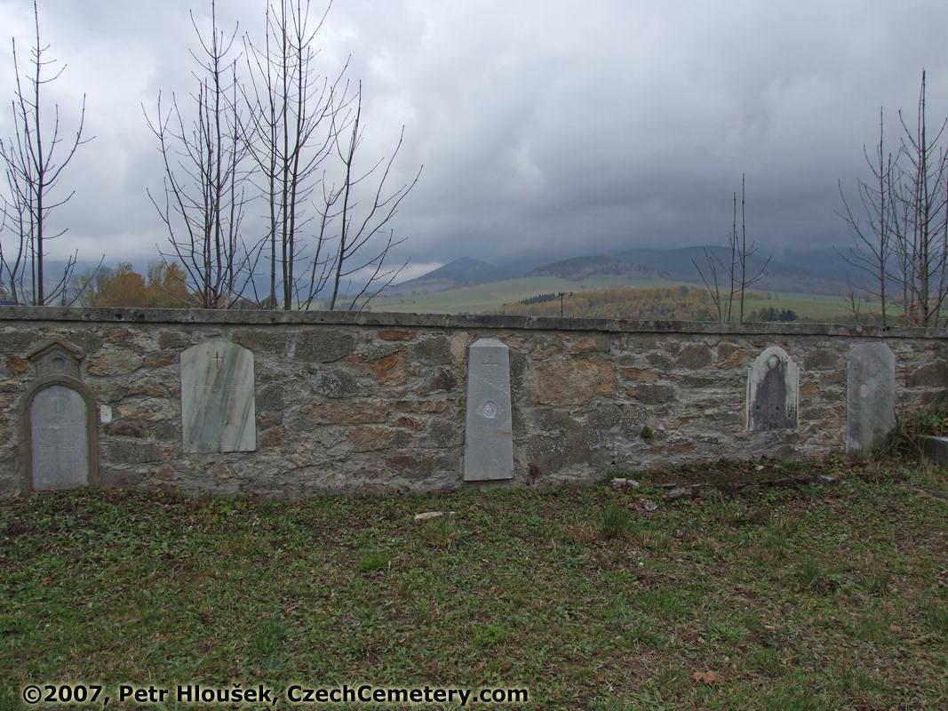 Left: Jahern Scholz, †16.11.1884 (36) | Left: Antonia Katzer, *16.2.1884 - †25.5.1925 | Middle: Josef Axmann, Gastwirt, †13.8.1928 (75) Josef Axmann, Lehrer, †17.6.1913 (27) | Right: Johann Reiter, †3.4.1912 (37?) | Right: Barbara Weik, 23.4.1935 (74) |