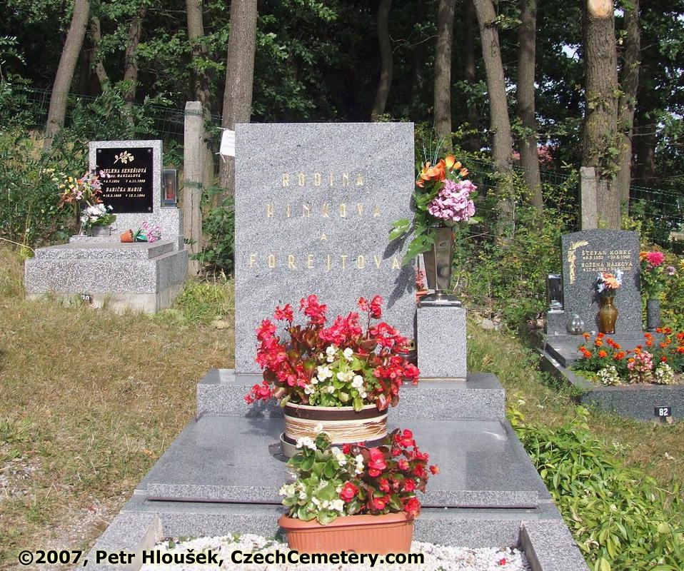 In front: | Neighbouring graves: babička Marie, *19.3.1908 - †12.1.1994 Štefan Korec, *8.3.1952 - †30.6.1965 Božena Hájková, *17.4.1932 - †30.6.2000 |