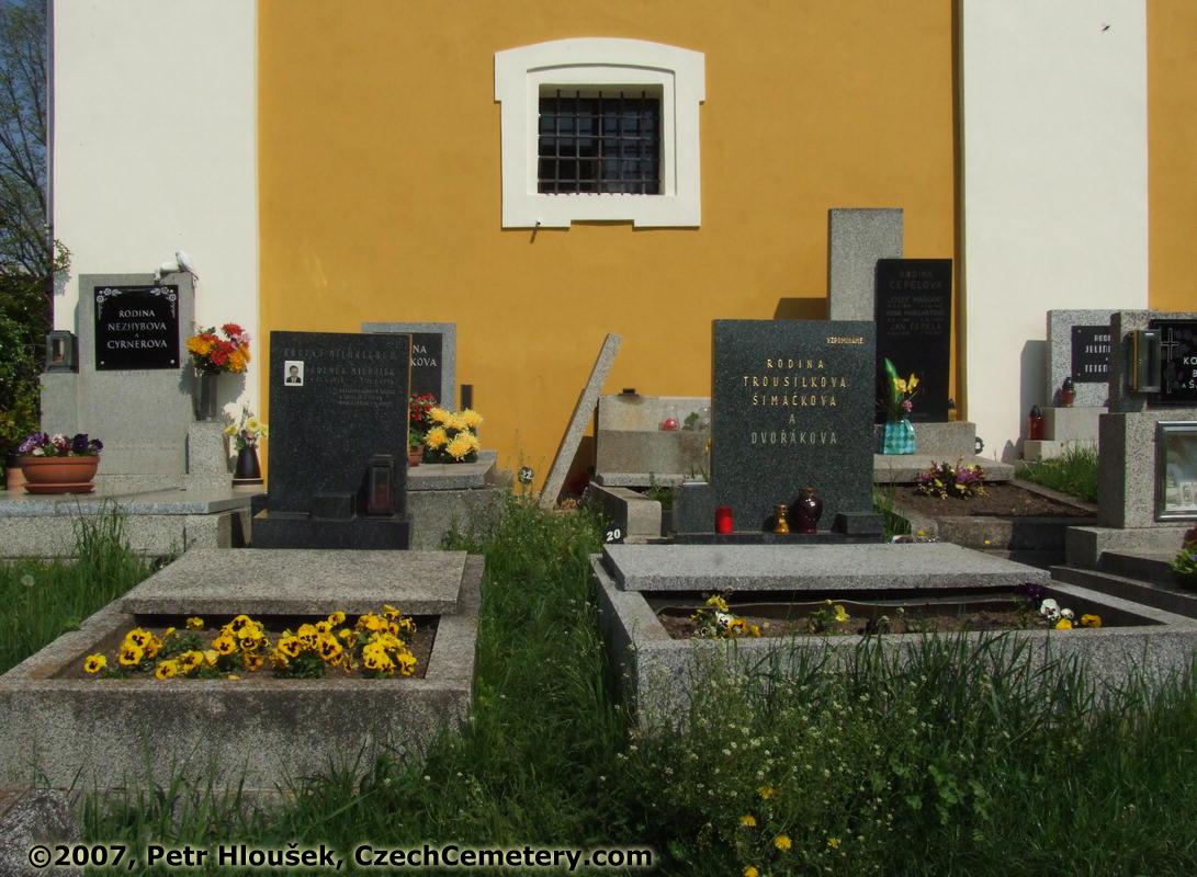 Vlevo: Zdeněk Michálek, *27.4.1928 - †25.2.1959 | Vpravo: | Okolní náhrobky: Josef Margant, *11.4.1854 - †7.8.1920 Jan Čepela, *26.4.1878 - †17.9.1937 |