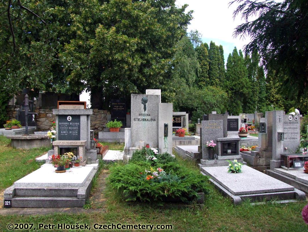 Left: Barbora Bejlková, *10.8.1892 - †18.5.1942 Evička Bejlková, *25.11.1949 - †7.2.1950 Karel Bejlek, *20.2.1889 - †13.10.1954 Pavel Bejlek, *10.11.1952 - †7.6.1978 Karel Bejlek, *20.11.1919 - †25.1.1984 | Middle: | Right: Amálie Fišerová, *25.7.1878 - †10.4.1960 | Neighbouring graves: Ladislav Pichlík, *25.9.1954 - †11.4.1996 |