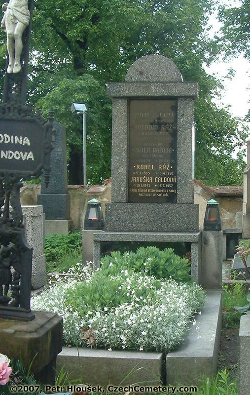 Antonín Ráž, z Dobřichovic, *3.1.1853 - †25.8.1925 Karel Ráž, *9.3.1885 - †15.4.1950 Jaruška Caldová, *19.1.1943 - †17.7.1957 Jaroslav Calda, *8.10.1933 - †2.4.1998 Josef Calda, *12.6.1901 - †16.12.1970 Miroslava Caldová, *3.2.1904 - †21.4.1980 |