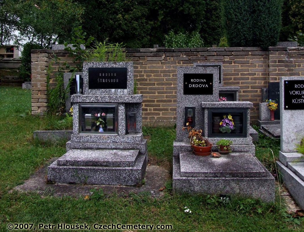 Left: Václav Štros, *28.11.1903 - †12.11.1980 | Right: Antonie Drdová, *8.7.1908 - †31.7.1??? Antonín Drda, *2.7.1901 - †21.4.1964 | Neighbouring graves: |